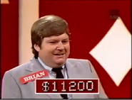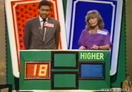 Above each contestant's row of cards was a moving bracket bearing the contestant's name which would mark one of the cards as the "base card." Each contestant's base card was the first card in the row of five. The winner of the question could choose to either play and keeping his/her base card, or have it replaced with another card from the top of the deck. The contestant then guessed whether the next (face-down) card in the row was "higher" or "lower," if correct, he or she could continue to guess the next card after that and so on (if both cards were the same, the guess counted as incorrect).