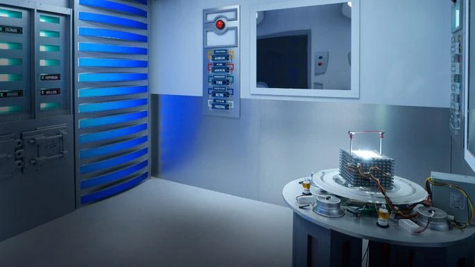 - (in the Beam Room)" Warning: step away from the walls. Extraction begins in three...two... one...!"