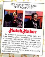 Matchmaker was a short-lived syndicated dating game show where six people were "matched-up" by host Dave Hull who couldn't see them, but could only hear their answers to the questions that he asked them, all the while his back was turned.