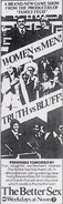 The Better Sex was the short-lived battle of the sexes game show that combined elements of Hollywood Squares & Family Feud.